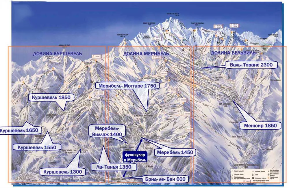 Тип локації: гірськолижний курорт у Французьких Альпах, розташований у мальовничій долині департаменту Савойя. Це одна з центральних станцій всесвітньо відомого гірськолижного регіону Les 3 Vallées, який об’єднує Куршевель, Мерібель, Валь-Торанс та інші курорти.