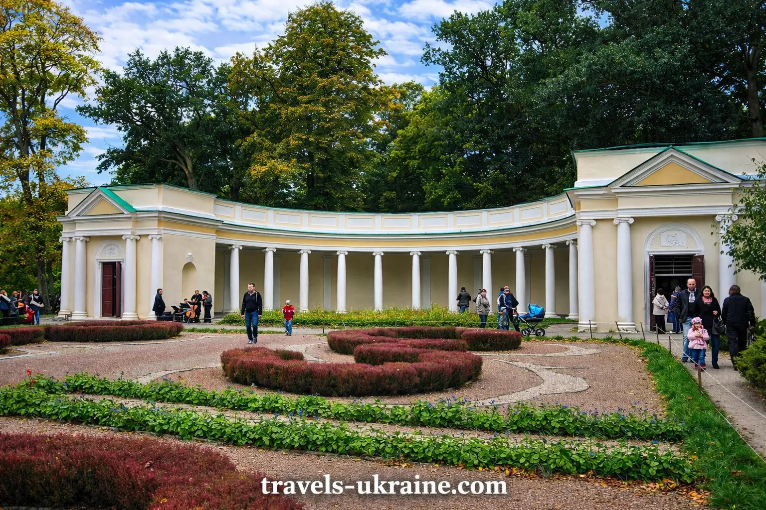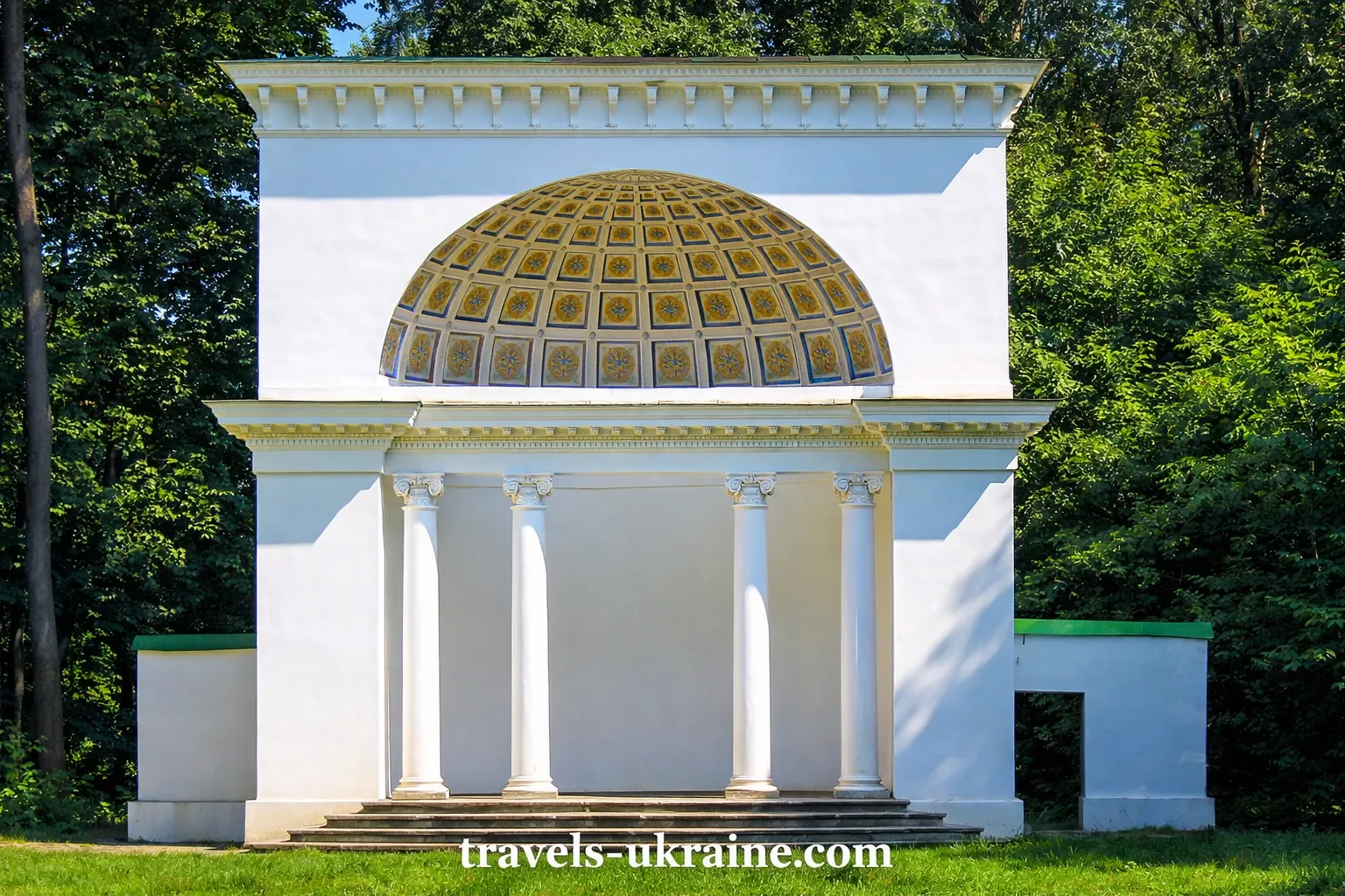 Та все ж своє знайомство з парком варто почати з найвідомішої споруди та справжньої перлини — колонади «Луна». Вона завжди перебуває в центрі уваги під час екскурсії в Державний дендрологічний парк «Олександрія». Її напівкругла форма створює унікальну акустику — навіть тихий голос звучить виразно й урочисто. Це місце ідеально підходить для фото, романтичної прогулянки або просто короткої паузи серед зеленої тиші.