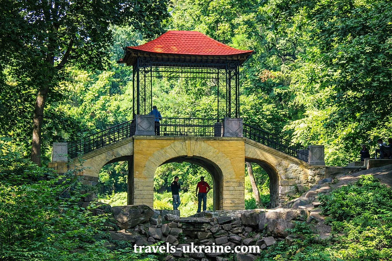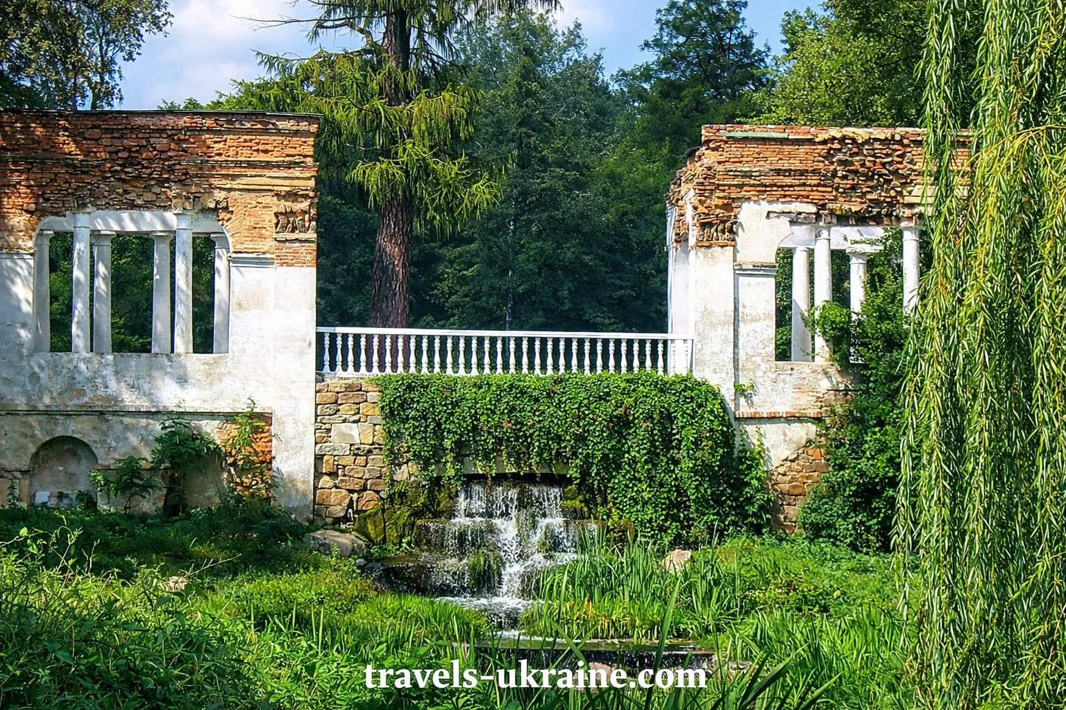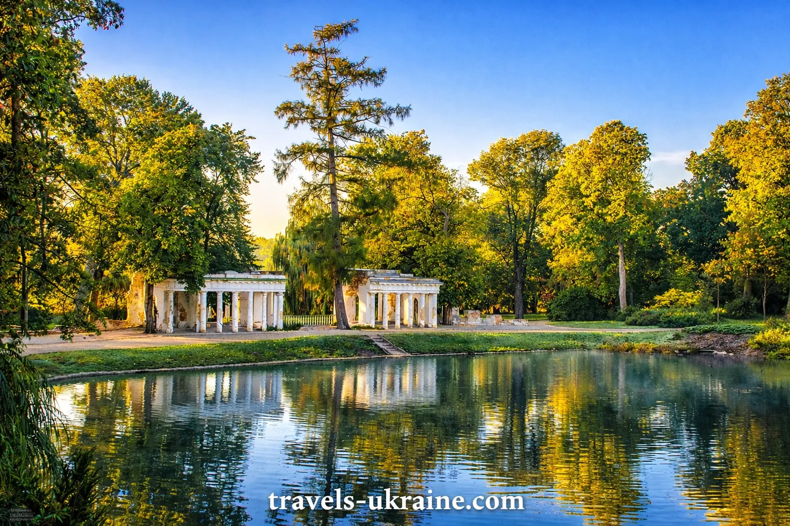 Прогулюючись територією, легко відчути, що парк ніби веде тихий діалог із відвідувачем. Ось тиха галявина для роздумів, ось колонада з ефектною акустикою — раптом ваше звичайне «алло» звучить майже урочисто. А за поворотом — романтичні «Руїни», які виглядають так переконливо, що хочеться перевірити, чи не забули тут випадково лицарський шолом.