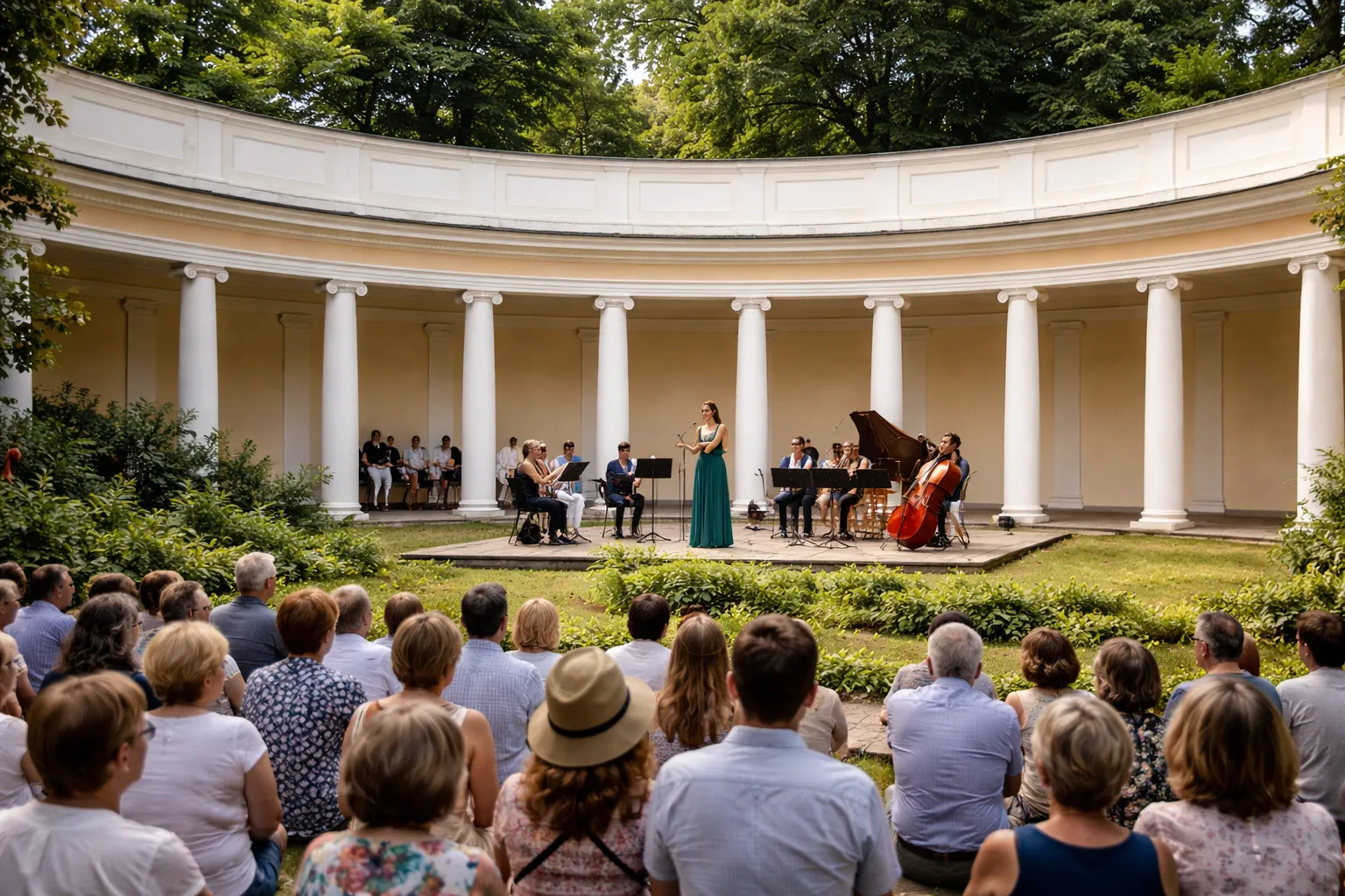 Архітектура тут не змагається з природою, а ніби веде з нею діалог. Руїни виглядають так, ніби пережили століття, хоча насправді були задумом романтичної моди. Колонади підсилюють акустику настільки, що навіть власні кроки здаються частиною театральної постановки. А «Китайський місток» додає східного акценту, неначе хтось вирішив: якщо вже створювати ідеальний парк, то чому б не запросити до нього трішки світу?