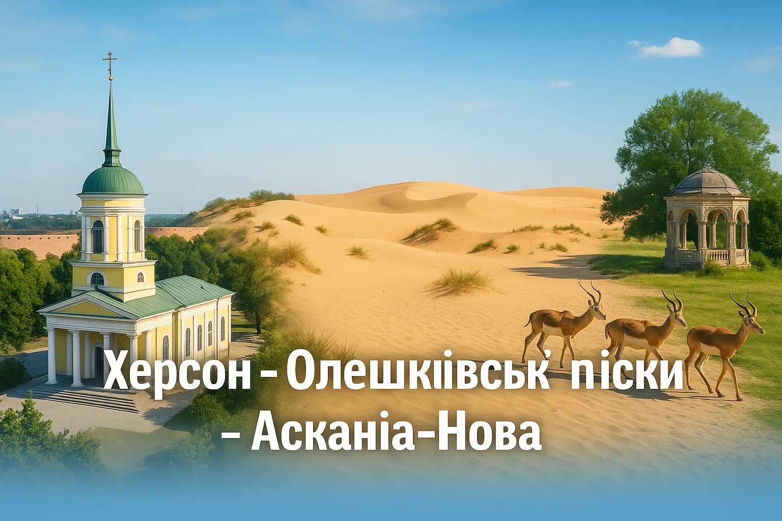 Маршрут по Херсонщине: Херсон → Олешковские пески → Биосферный заповедник «Аскания-Нова». Это удобный автомобильный маршрут на один день для ценителей истории, природы и степных пейзажей. Короткие переезды, понятный ритм и подсказки по ракурсам сделают поездку лёгкой и насыщенной.