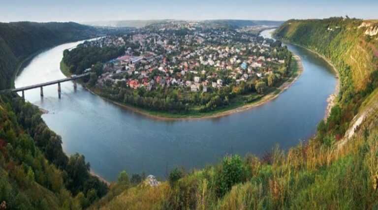 Найкраща панорама відкривається з села Хрещатик — саме звідти видно повний вигин Дністра навколо міста.