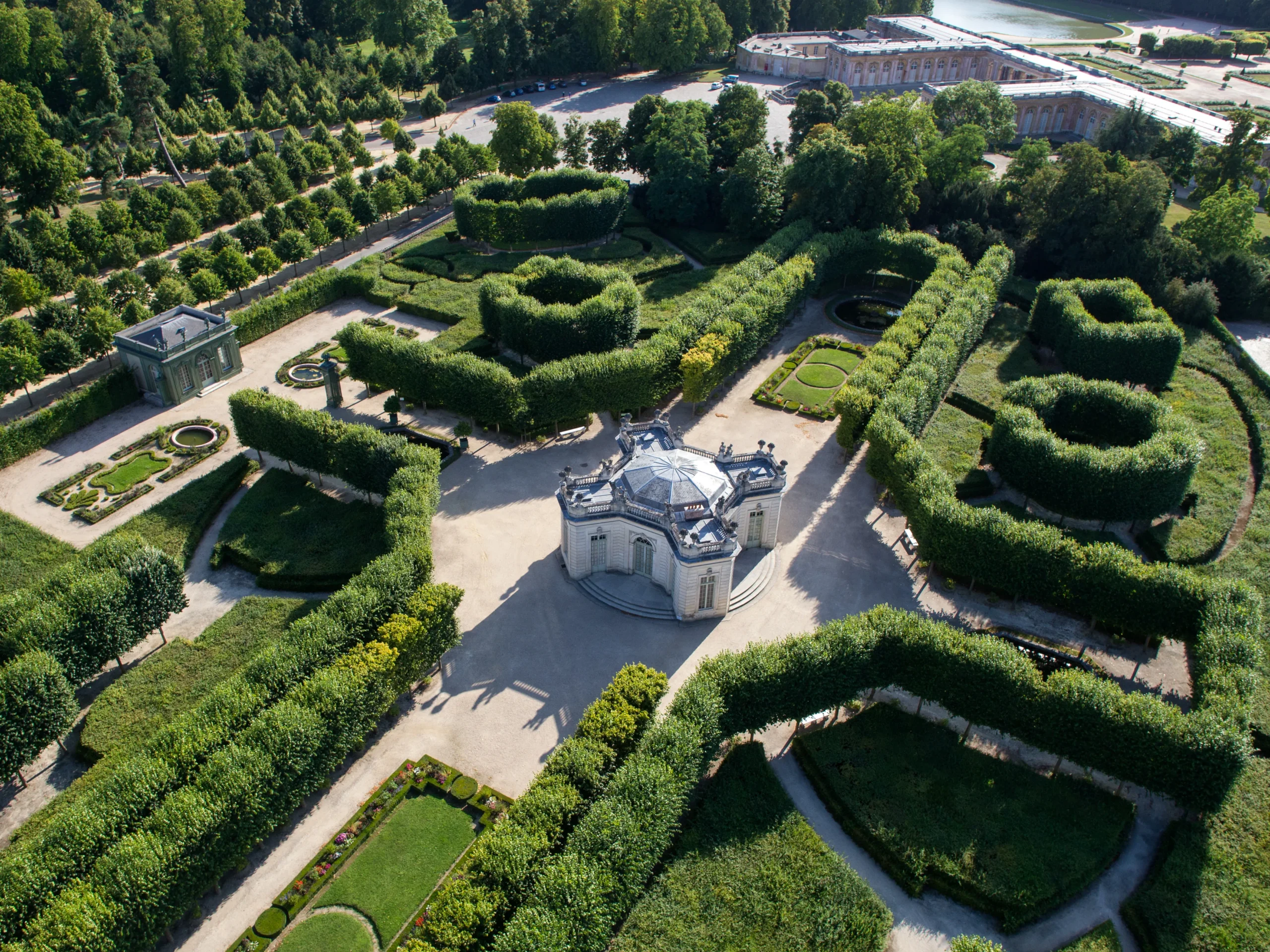 Площа садів перевищує 800 гектарів, і кожна стежка, кожен фонтан або партер створювалися за ретельно продуманим планом. Це не просто парк — це модель ідеального світу, де все підкорене волі монарха. Геометричні візерунки клумб, бездоганна симетрія алей, дзеркальні водойми — усе це створює відчуття спокою та величі водночас. Тут навіть дерева підстрижені так, щоб їхні лінії продовжували архітектурну логіку палацу.