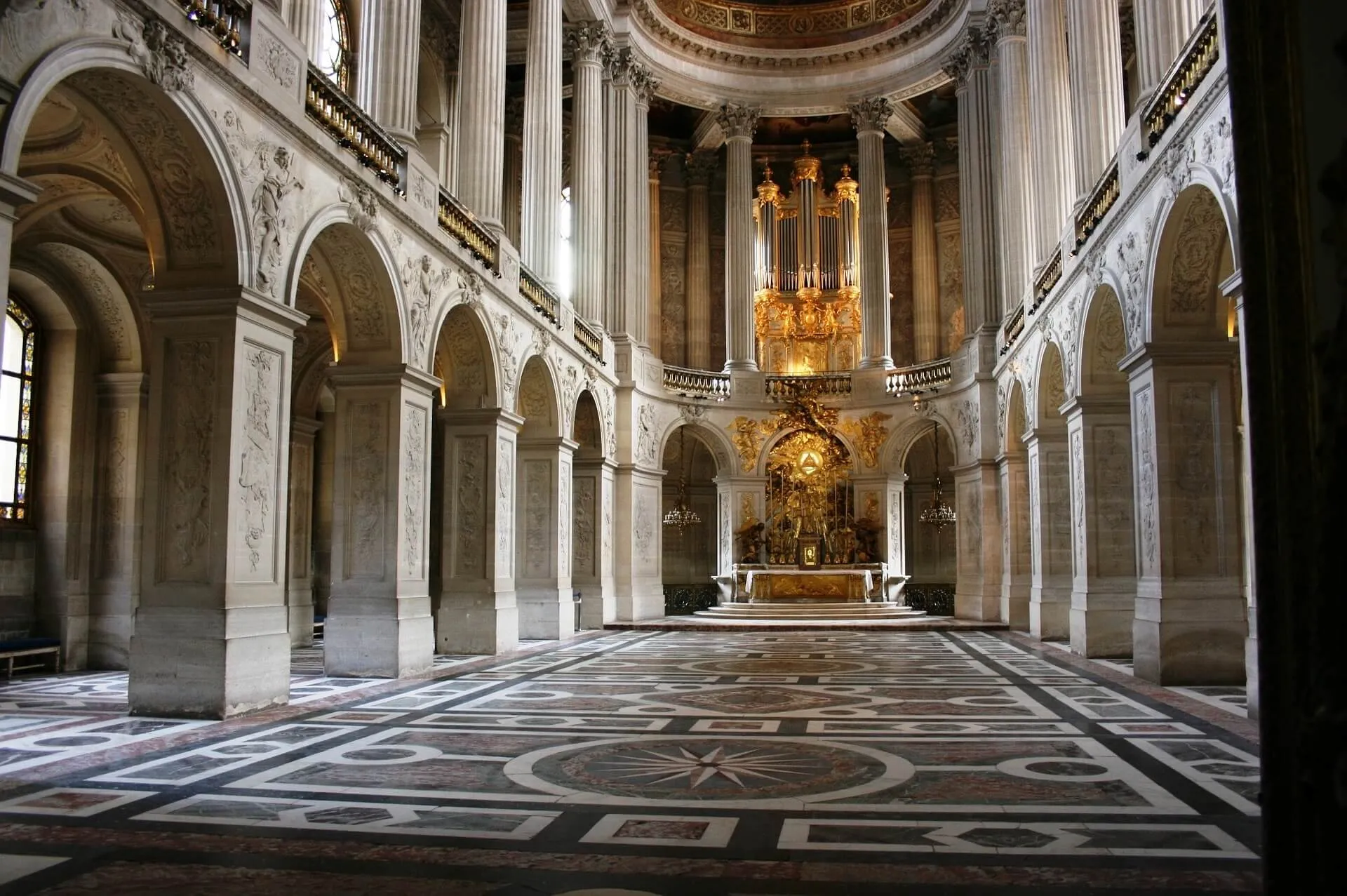 Велична Королівська каплиця — архітектурна перлина, що поєднує небо й землю. Її високі арки, білосніжні колони та фрески, що сяють у променях світла, створюють атмосферу священного спокою. Саме тут Людовик XIV та його нащадки брали участь у богослужіннях, що підкреслювали священну природу їхньої влади. Музика органу, відлуння хору, запах ладану — усе це й нині змушує відвідувачів відчути трепет перед величчю часу.
