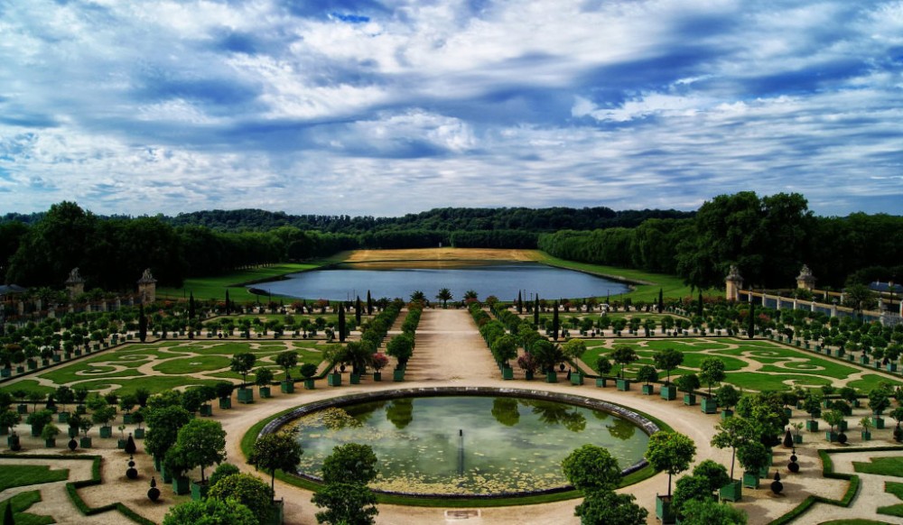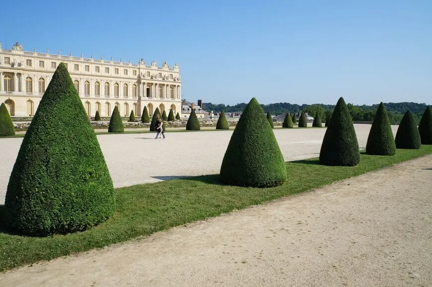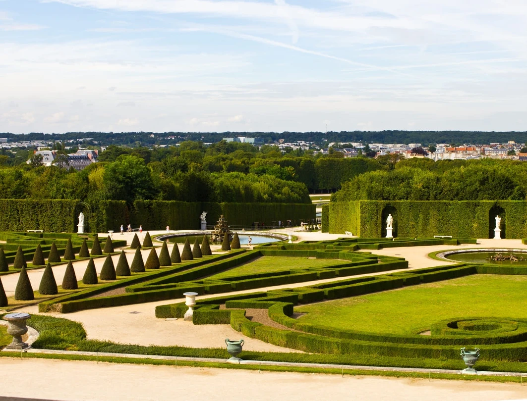 Площа садів перевищує 800 гектарів, і кожна стежка, кожен фонтан або партер створювалися за ретельно продуманим планом. Це не просто парк — це модель ідеального світу, де все підкорене волі монарха. Геометричні візерунки клумб, бездоганна симетрія алей, дзеркальні водойми — усе це створює відчуття спокою та величі водночас. Тут навіть дерева підстрижені так, щоб їхні лінії продовжували архітектурну логіку палацу.