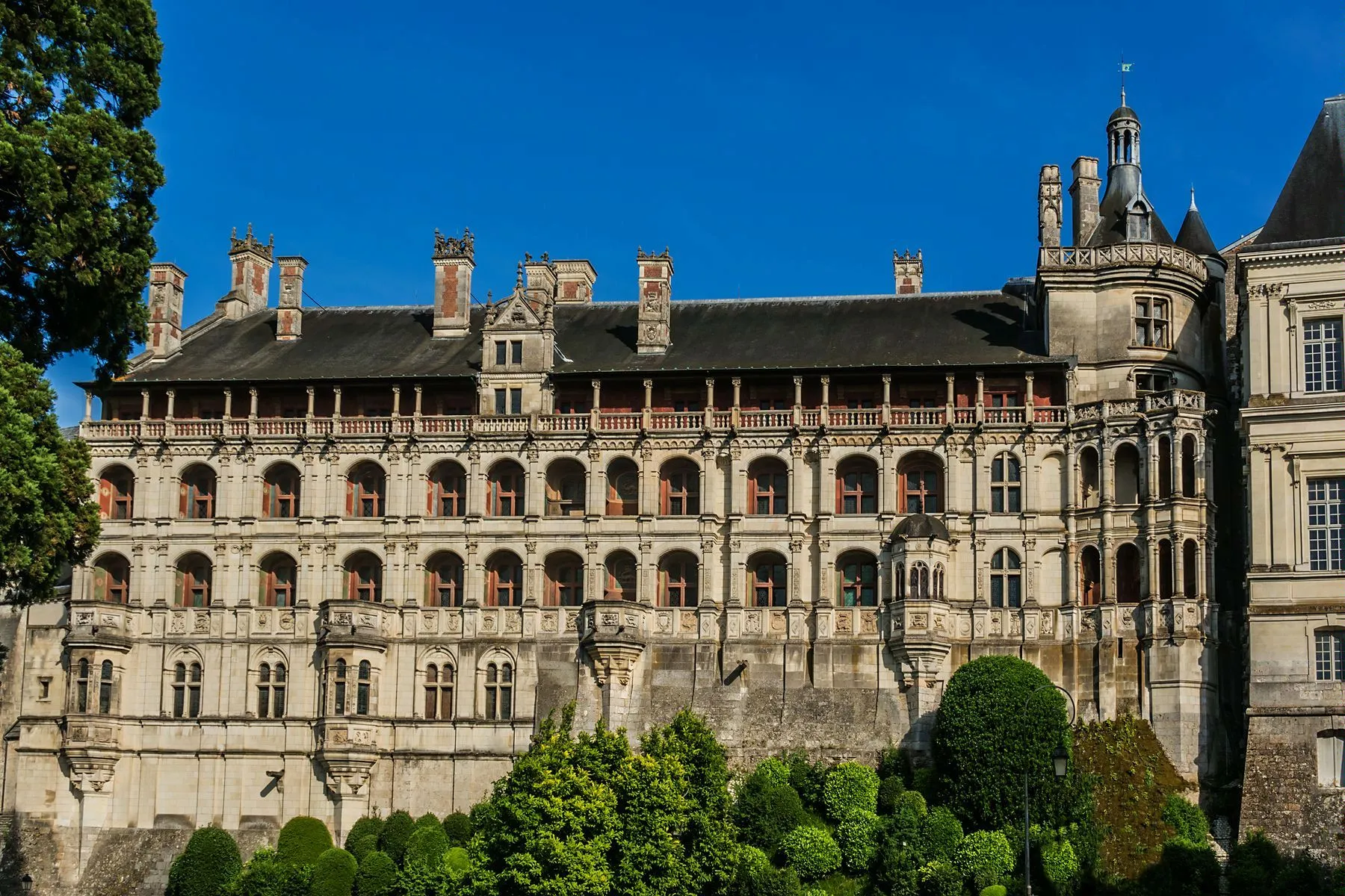 З приходом епохи Відродження Замок Блуа Франція різко змінює настрій. З’являються декоративні фасади, витончені вікна та знаменита гвинтова сходова вежа, яка й сьогодні залишається однією з найфотогенічніших деталей серед ренесансних замків Луари. Тут архітектура вже не захищається — вона демонструє статус, смак і амбіції королівської влади. Фасади більше не лякають ворогів, а вражають гостей, сходи ведуть не до бойових позицій, а до парадних залів, де кожна деталь мала нагадувати: перед вами не просто замок, а королівська резиденція.